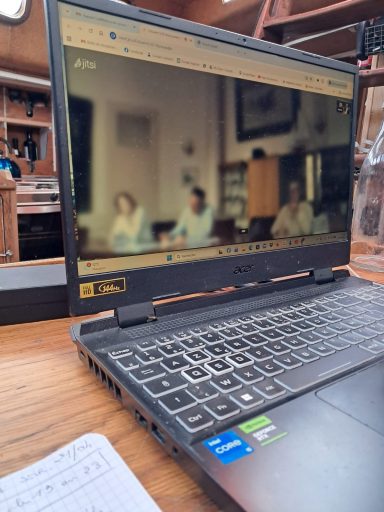 Nous sommes à l'heure pour la conférence de presse en visio avec Estuaire Sud et 3 journalistes de Honfleur pour présenter la Soirée Festive de La Nouvelle Odyssée. Estuaire Sud est une association qui s'active pour protéger les zones Natura 2000 de l'estuaire de la scène. Avec le soirée, Estuaire Sud se fait mieux connaître, élargit ses adhésions et imagine des projets.