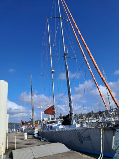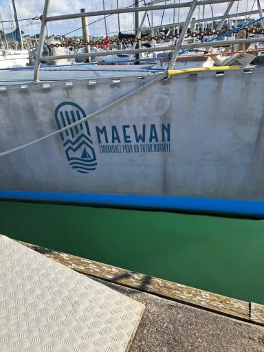Devant nous, la goélette Maewan qui navigue pour un "futur durable" (tiens, tiens !) en combinant sport extrême et navigation vers des sommets en Islande, au Groenland et en Antartique. Faire admirer la nature pour la préserver est leur mantra.
